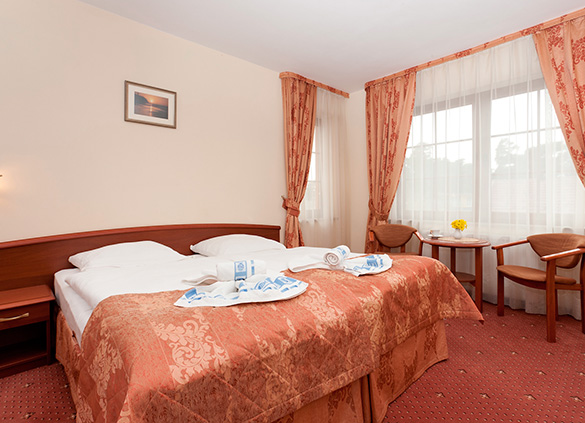 Pokój komfortowo wyposażony, z dużym podwójnym łóżkiem oraz wyposażeniem. Do każdego z pokoi przynależy łazienka z kabiną prysznicową oraz toaletą, TV-Sat, lodówka, Internet, sprzęt plażowy.